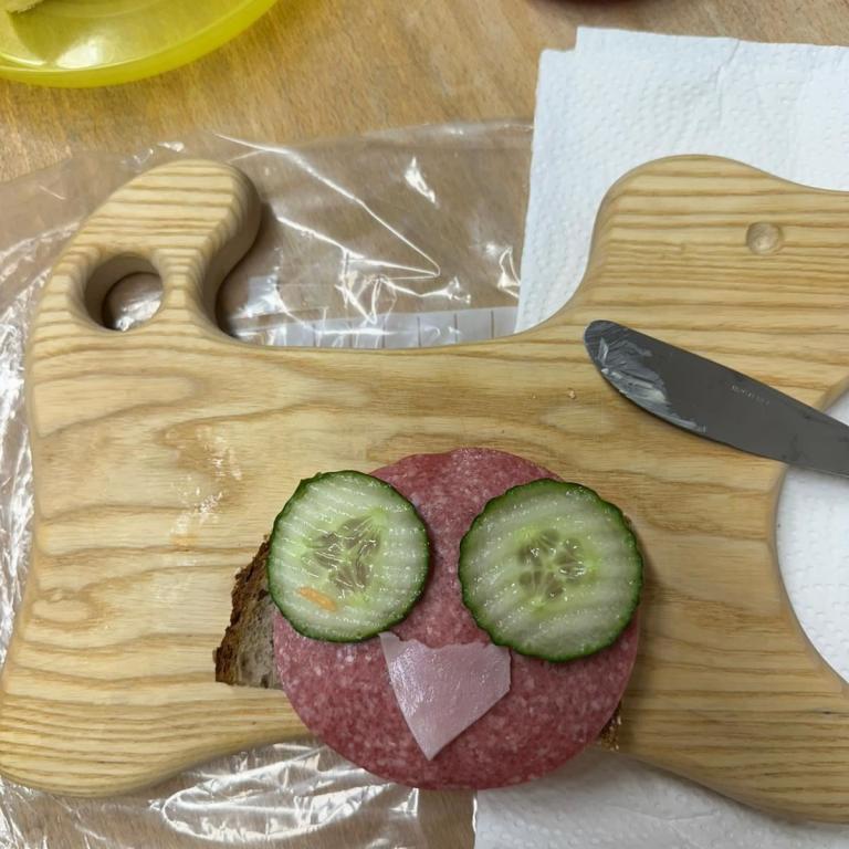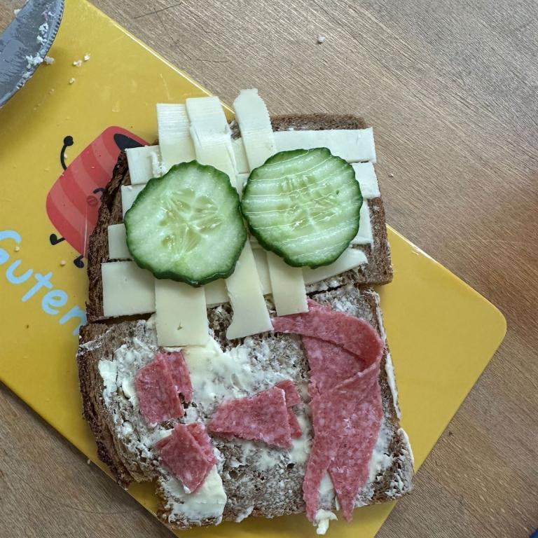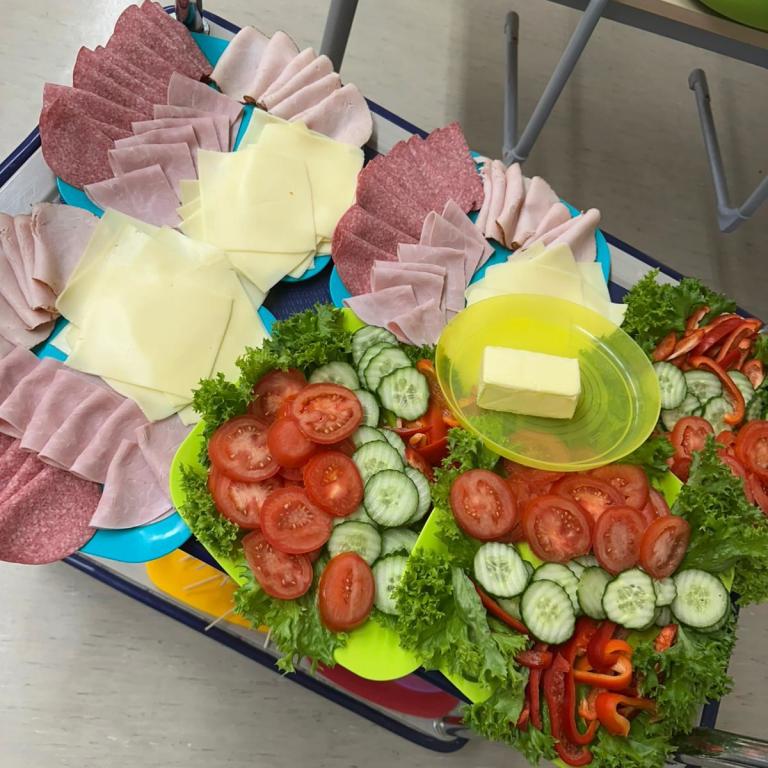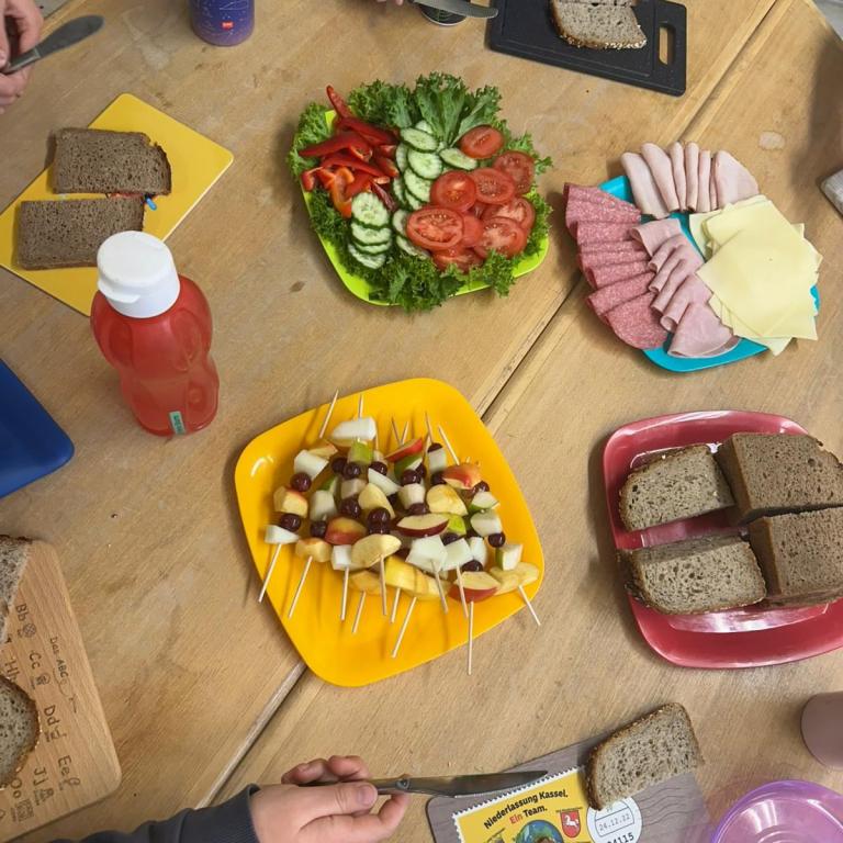 Anschließend wurde es praktisch: Die Kinder konnten sich ihre eigenen Brote belegen – mit Käse, Wurst und viel frischem Gemüse wie Paprika, Gurken und Tomaten. Dabei hatten alle viel Spaß und konnten gleichzeitig erleben, wie lecker ein gesundes Frühstück schmecken kann.