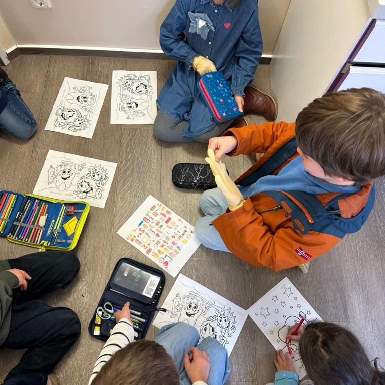 Mit viel Vorfreude und Neugier – und natürlich einigen spannenden Fragen im Gepäck – machten sich die Klasse schließlich auf den Weg zur Praxis. Vor Ort erklärte das Team von „Zahn Hoch 3“, wie und warum ein Zahn versiegelt wird und zeigte anschaulich, wie die Versiegelung funktioniert. An einem großen Gebissmodell wurde außerdem noch einmal die KAI-Methode zum Zähneputzen demonstriert.