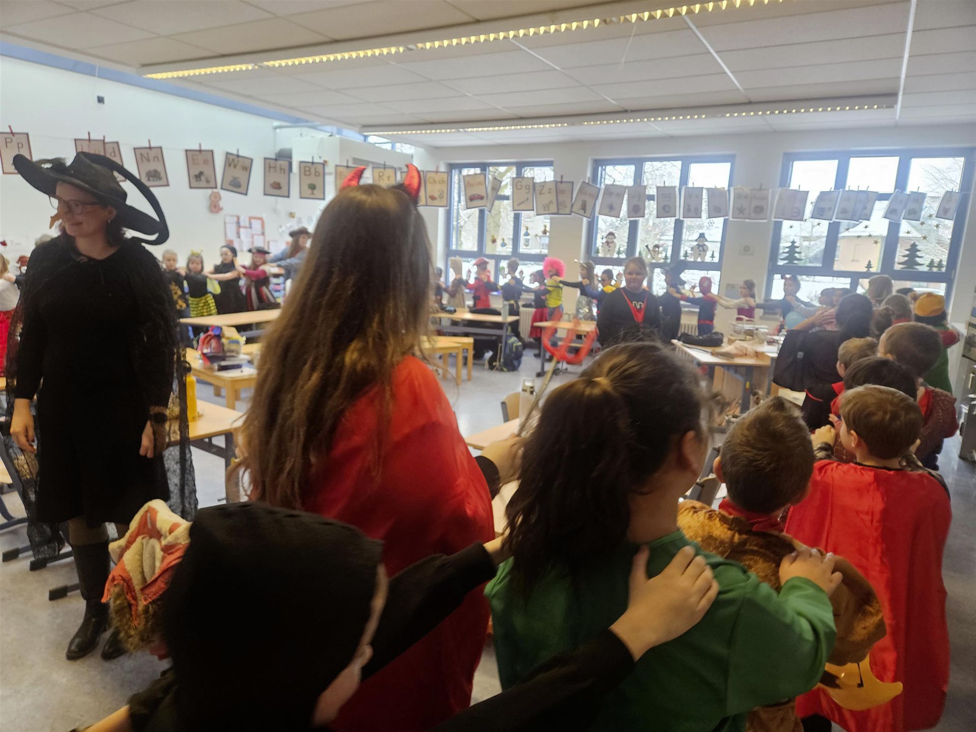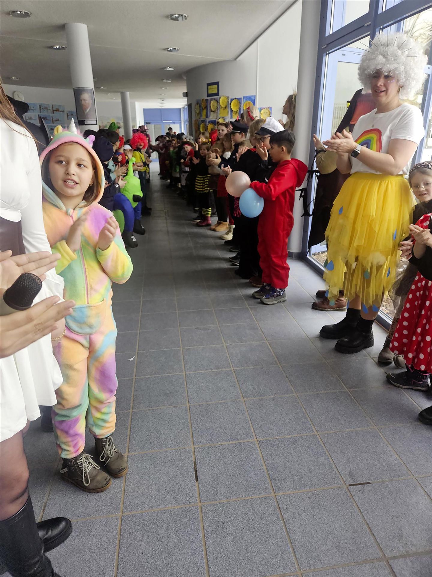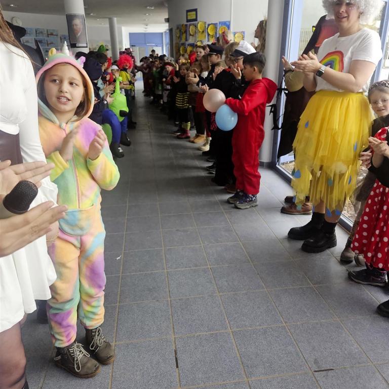 Den krönenden Abschluss bildete eine fröhliche Polonaise durch das gesamte Schulgebäude. Singend und lachend zog die bunte Karnevalsschlange durch die Flure und sorgte überall für ausgelassene Stimmung.