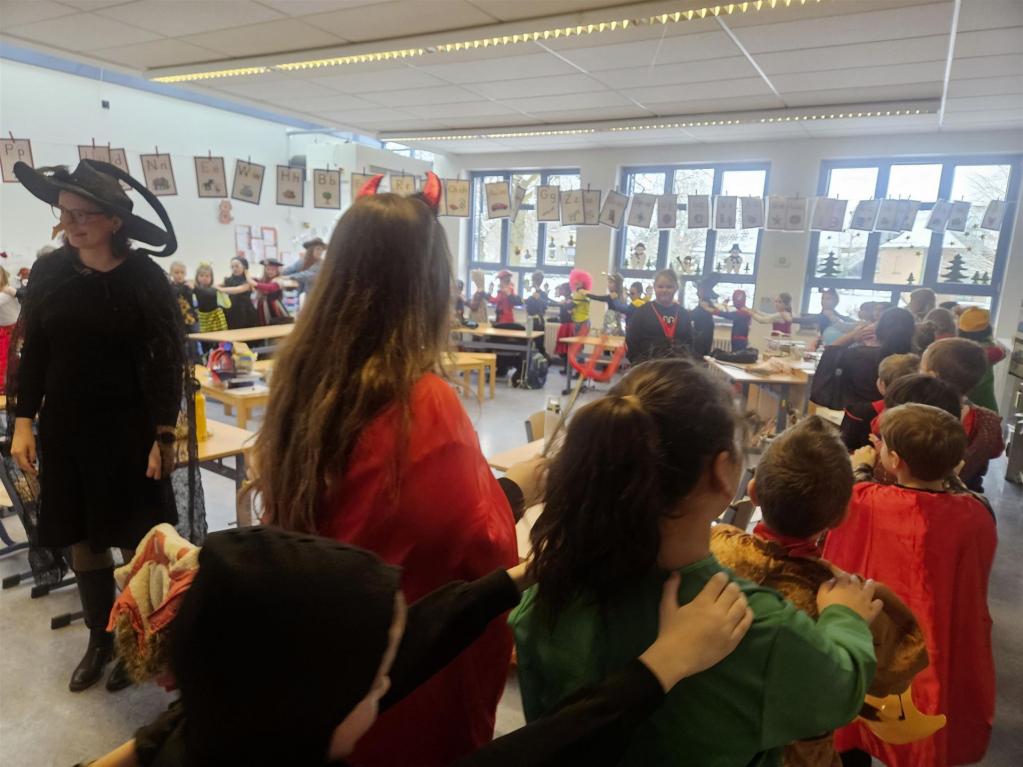 Helau und Alaaf hieß es, als die Schülerinnen und Schüler gemeinsam Karneval feierten. Schon am Morgen verwandelten sich die Klassenräume in ein buntes Meer aus Prinzessinnen, Superhelden, Tieren, Piraten und vielen weiteren fantasievollen Kostümen.