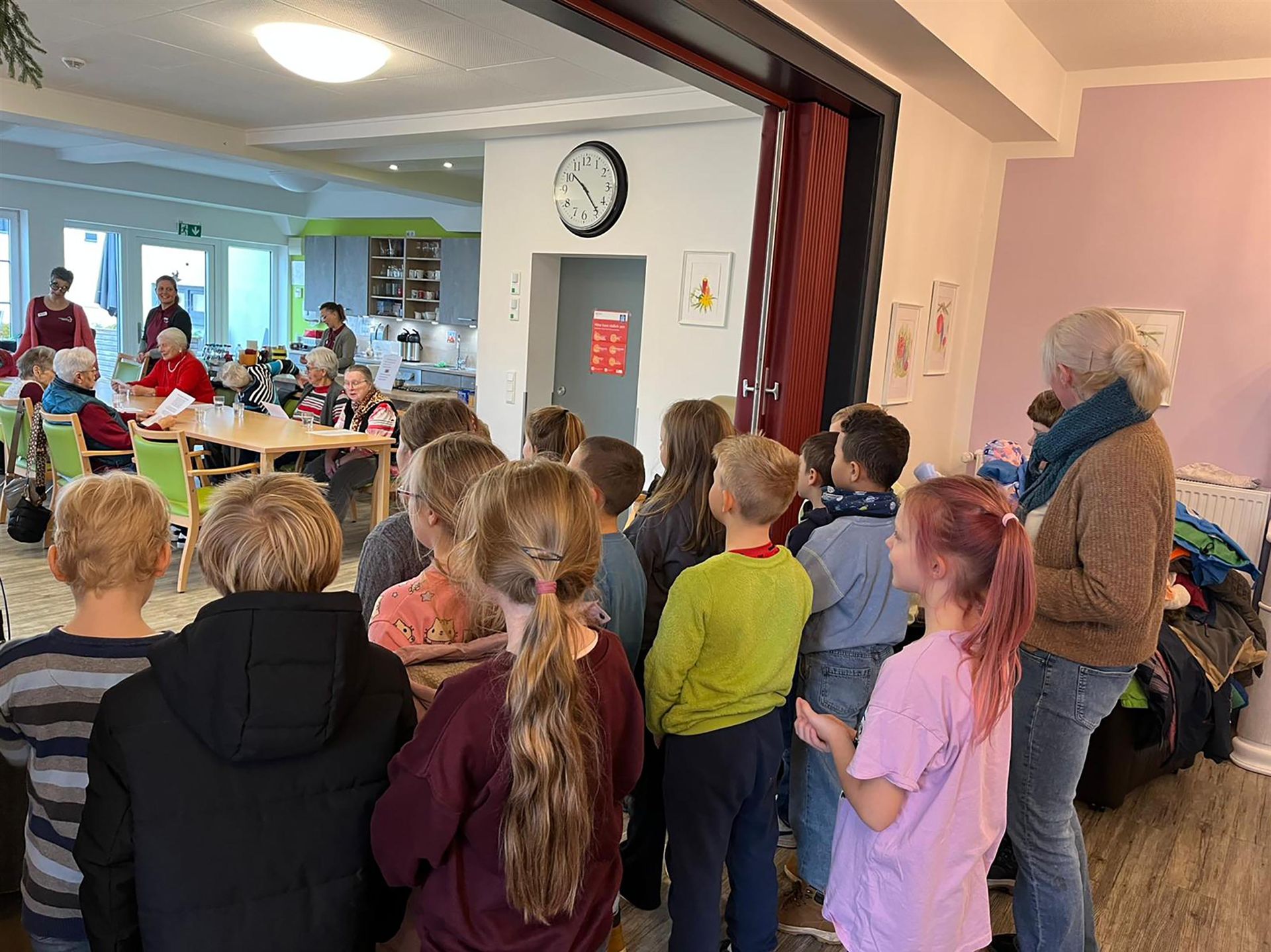 Ein fester Bestandteil der Adventszeit war das gemeinsame Singen. Jeden Montag trafen sich die Klassen, um Weihnachtslieder zu singen und sich gemeinsam auf das Weihnachtsfest einzustimmen. Ein besonderes Erlebnis war zudem das Singen im Tagestreff bei Dormann und Steppat, das bei allen Beteiligten für schöne Momente und strahlende Gesichter sorgte.
