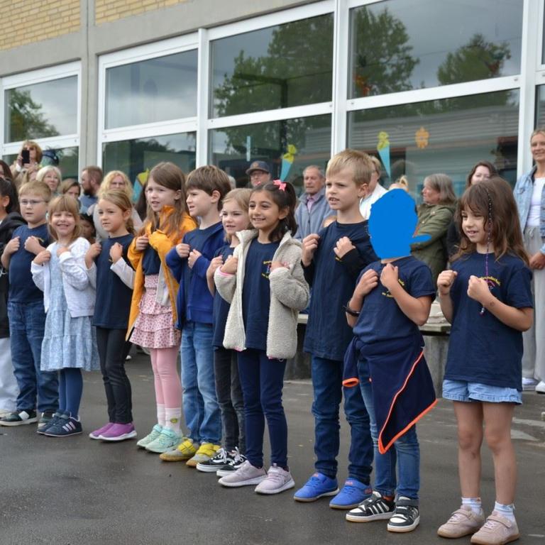 Am 23. August begrüßten wir unsere neuen Erstklässlerinnen und Erstklässler mit einer fröhlichen Einschulungsfeier auf unserem Schulhof. Nach einer herzlichen Ansprache der Schulleitung gestalteten die Klassen 2 bis 4 ein buntes Programm, um die neuen Mitschülerinnen und Mitschüler willkommen zu heißen. Die Stacking-AG beeindruckte mit ihrem Können und die Klasse 4b begeisterte mit einem Stück auf dem Glockenspiel, das mit viel Applaus belohnt wurde. Anschließend ging es für die Erstklässlerinnen und Erstklässler in ihre Klassenräume, wo sie ihre allererste Unterrichtsstunde erleben durften.
