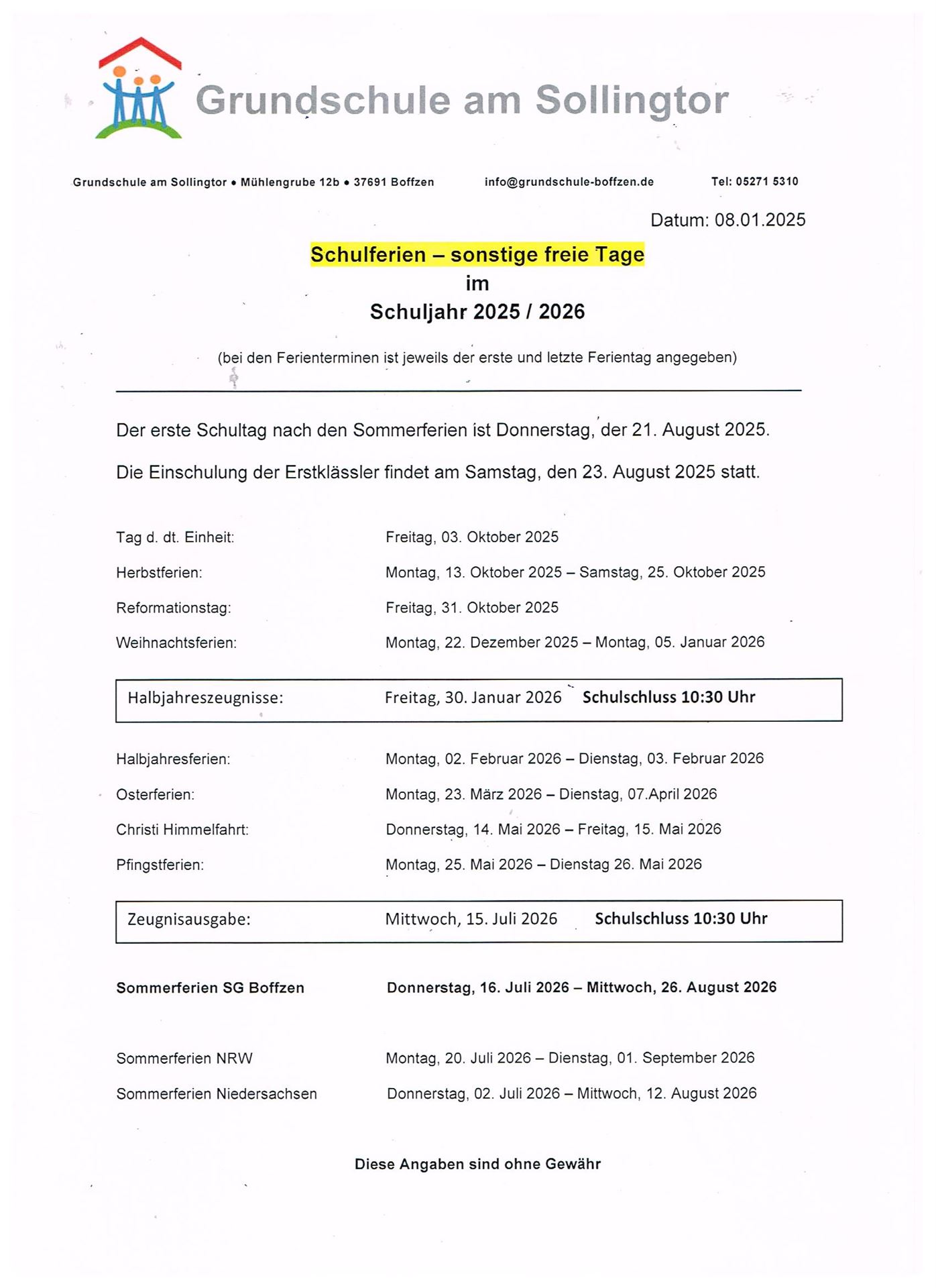 Grundschule am Sollingtor - Mühlengrube 12b - 37691 Boffzen