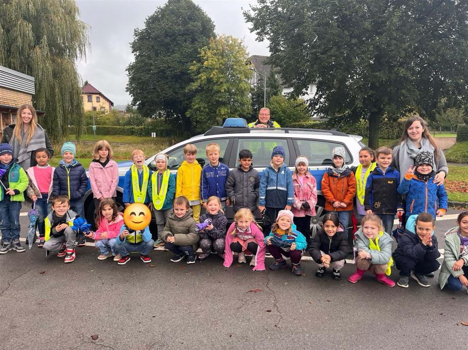 Die Klassen 1a und 1b trafen sich am Vormittag mit der Polizei in Boffzen, um die Umgebung rund um die Schule zu erkunden. Dabei sprühten unsere eifrigen Erstklässler gelbe Füße auf den Boden, um gefährliche Verkehrsstellen auf dem Schulweg zu markieren. Toll gemacht!