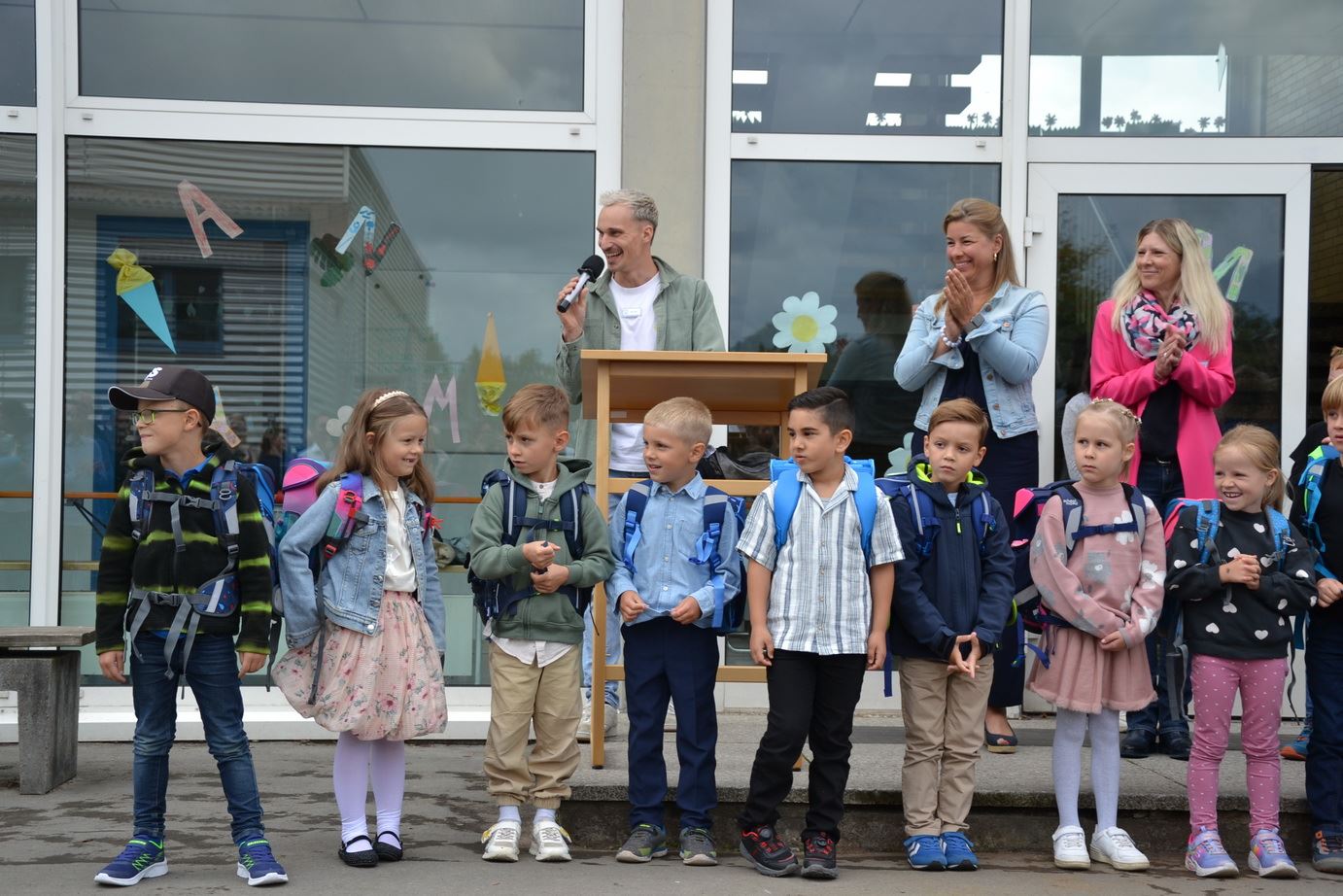 Am Samstag, dem 17.08.2024, fand an unserer Schule die Einschulung der Erstklässler statt. 25 Jungen und neun Mädchen starteten voller Vorfreude ihre Schullaufbahn. Der Tag begann mit einem ökumenischen Gottesdienst in der katholischen Kirche. Im Anschluss wurden alle Neuanfängerinnen und Neuanfänger sowie ihre Familien auf dem Schulhof von unserem Schulleiter Herrn Kis, dem Lehrerkollegium und der gesamten Schulgemeinschaft begrüßt. Die Schülerinnen und Schüler der zweiten bis vierten Klassen stellten ein buntes und abwechslungsreiches Programm vor.