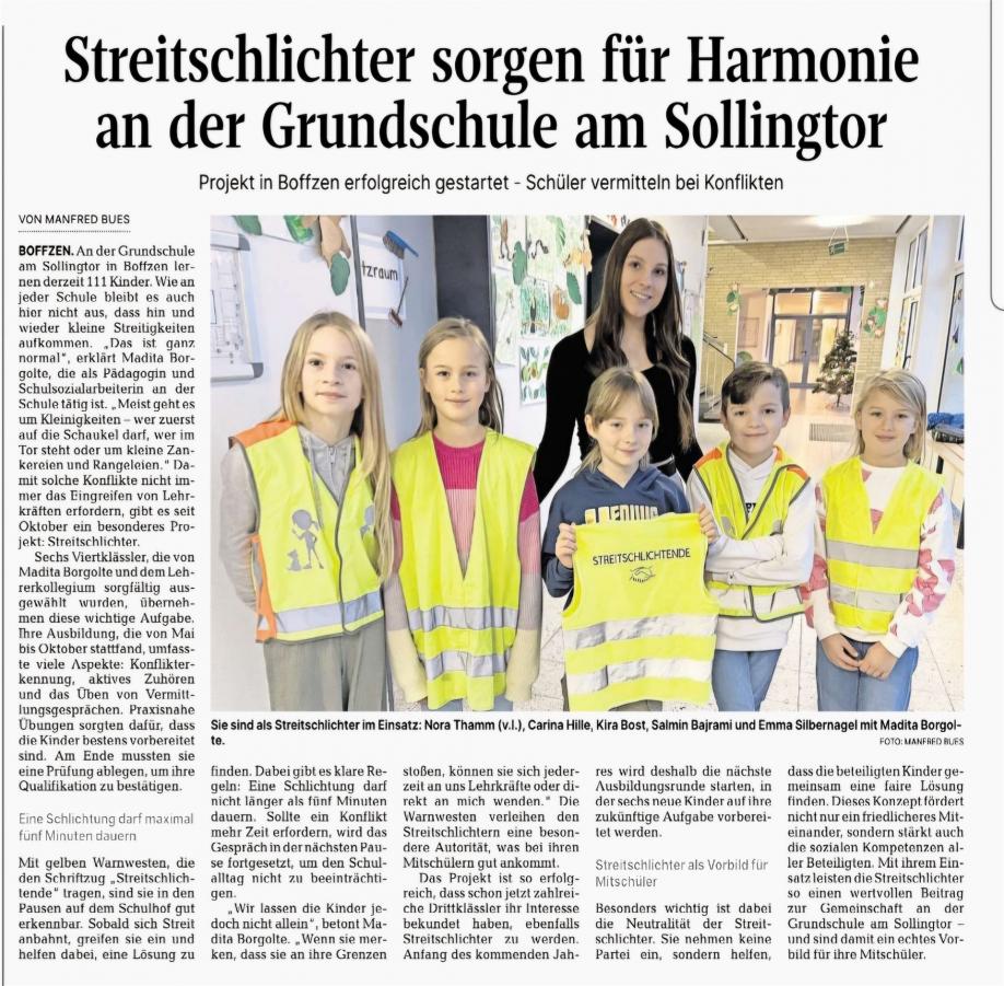 Mit ihrem Engagement tragen sie zu einer positiven Schulatmosphäre bei und helfen, Streitigkeiten in den Pausen friedlich zu lösen. Wir sind stolz auf ihre Entwicklung und freuen uns sehr, sie nun offiziell im Einsatz zu sehen.
