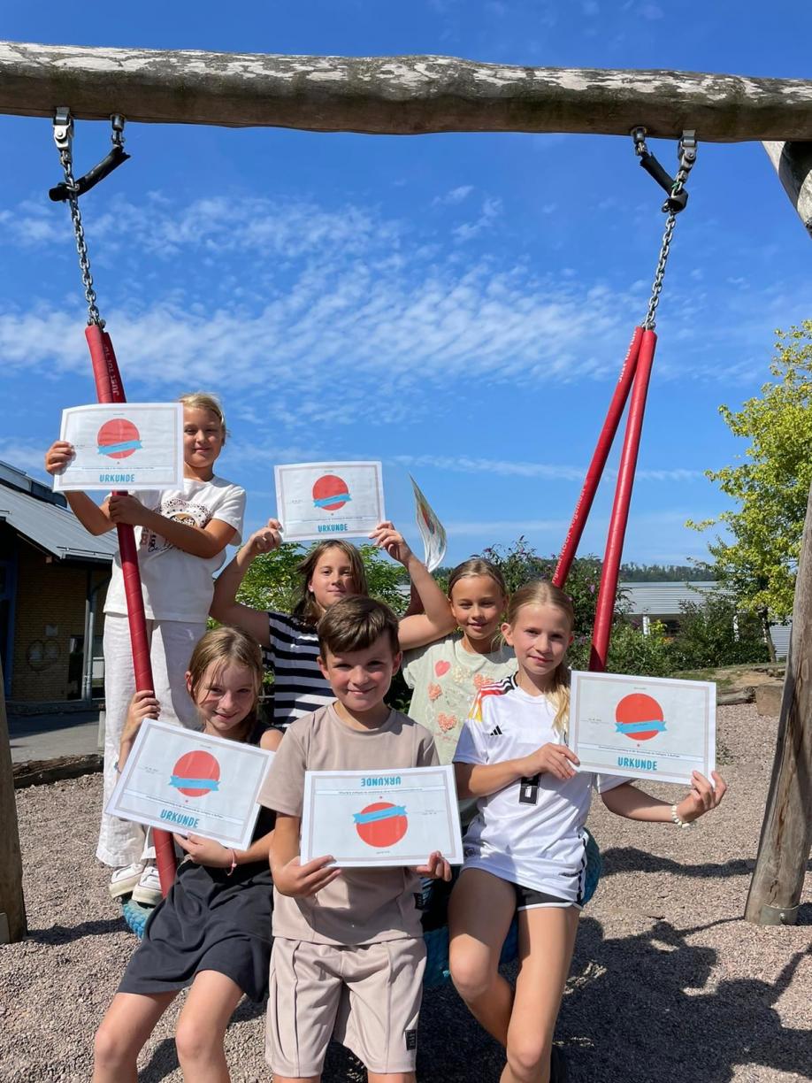 Bei der anschließenden Siegerehrung belegten die Jungen den 3. Platz, die Mädchen erreichten Platz 4 in der Gesamtwertung. Zur Erinnerung an den schönen Tag bekam jede*r eine Urkunde und sogar einen Fußball geschenkt.