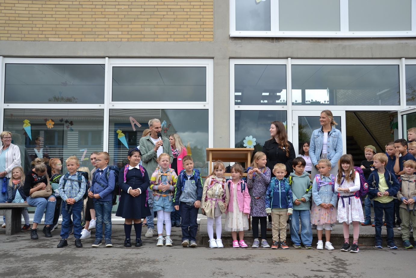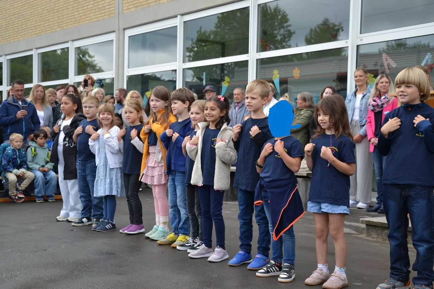 Am 23. August begrüßten wir unsere neuen Erstklässlerinnen und Erstklässler mit einer fröhlichen Einschulungsfeier auf unserem Schulhof. Nach einer herzlichen Ansprache der Schulleitung gestalteten die Klassen 2 bis 4 ein buntes Programm, um die neuen Mitschülerinnen und Mitschüler willkommen zu heißen. Die Stacking-AG beeindruckte mit ihrem Können und die Klasse 4b begeisterte mit einem Stück auf dem Glockenspiel, das mit viel Applaus belohnt wurde. Anschließend ging es für die Erstklässlerinnen und Erstklässler in ihre Klassenräume, wo sie ihre allererste Unterrichtsstunde erleben durften.