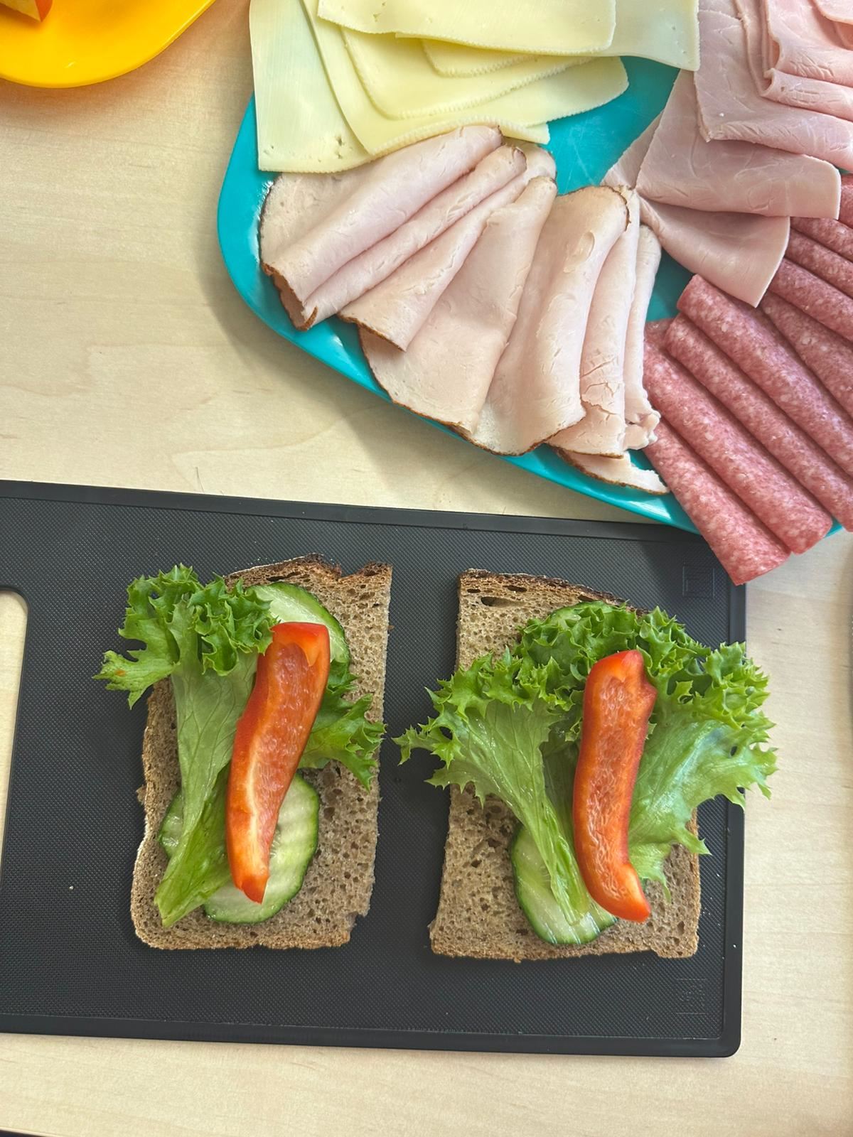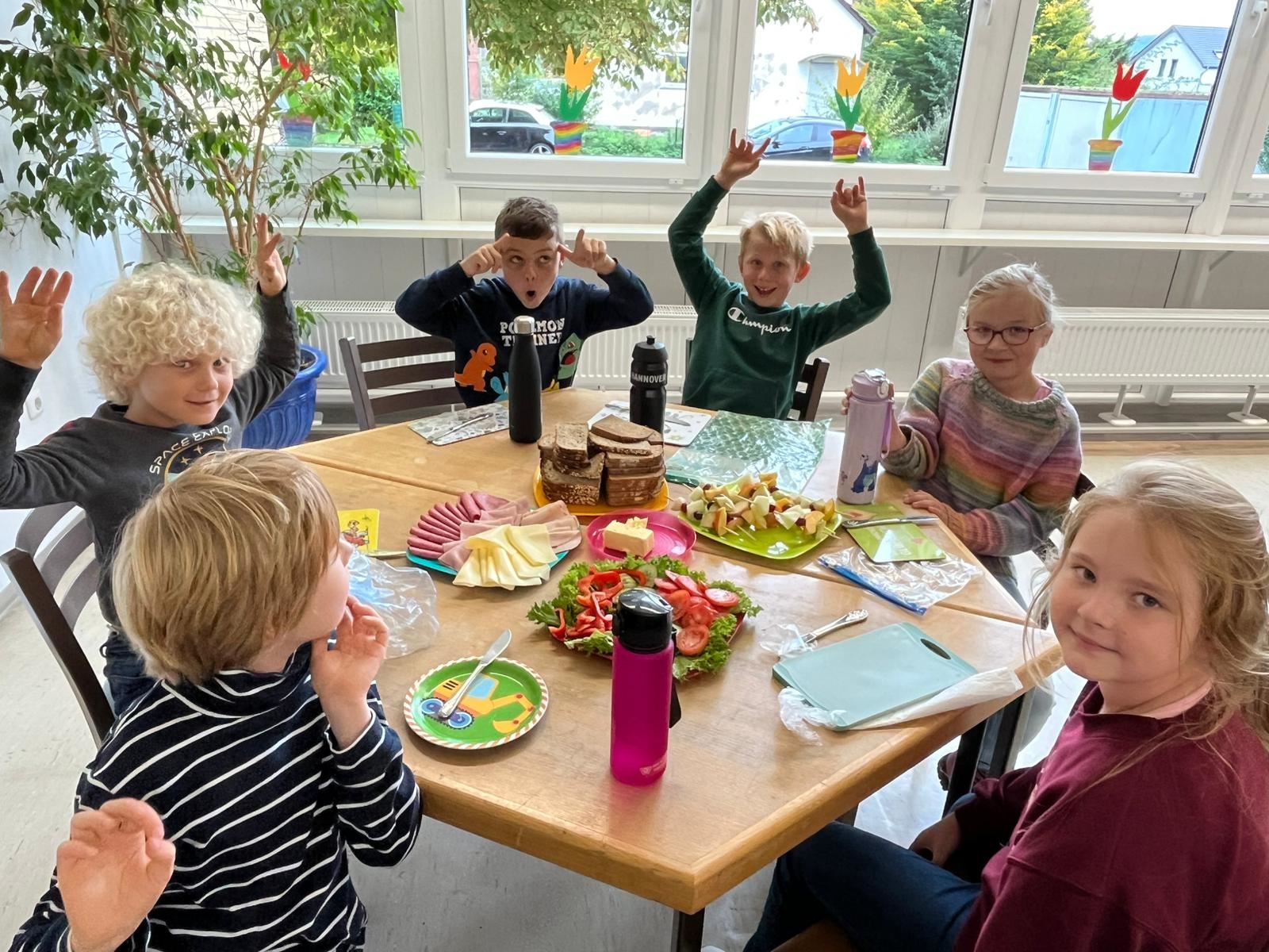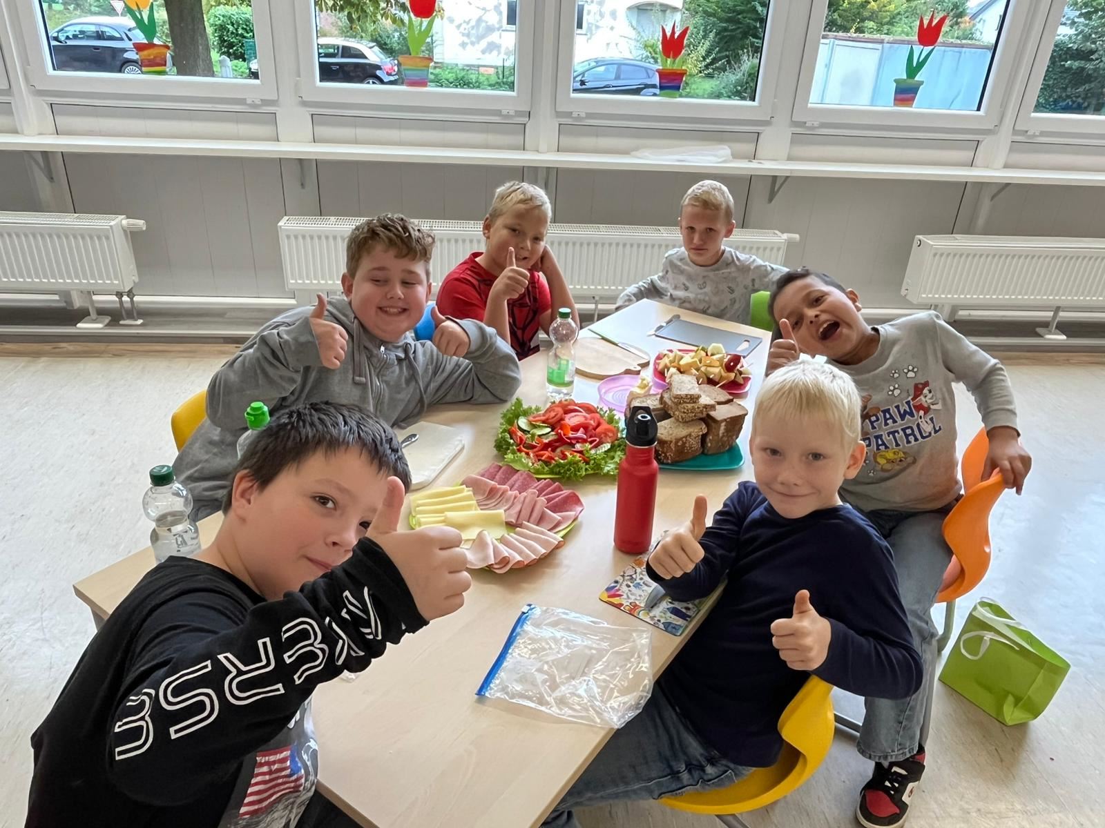Anschließend wurde es praktisch: Die Kinder konnten sich ihre eigenen Brote belegen – mit Käse, Wurst und viel frischem Gemüse wie Paprika, Gurken und Tomaten. Dabei hatten alle viel Spaß und konnten gleichzeitig erleben, wie lecker ein gesundes Frühstück schmecken kann.