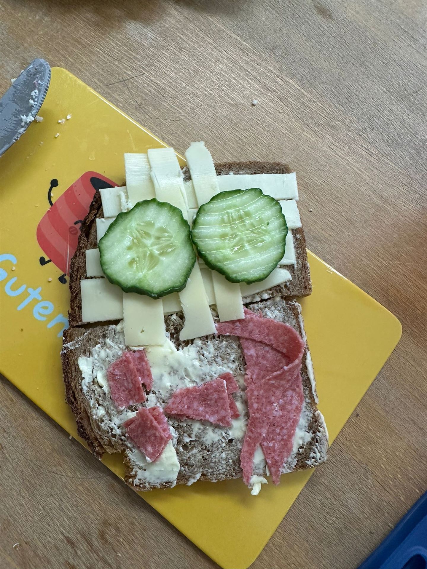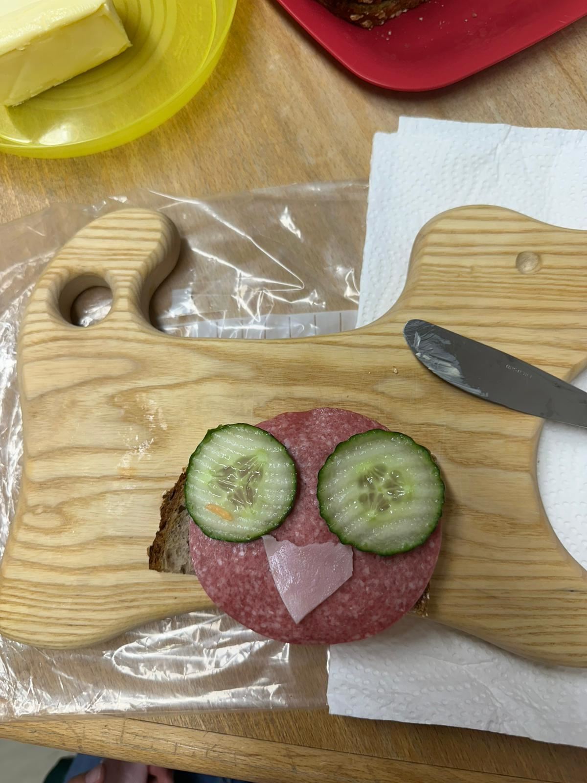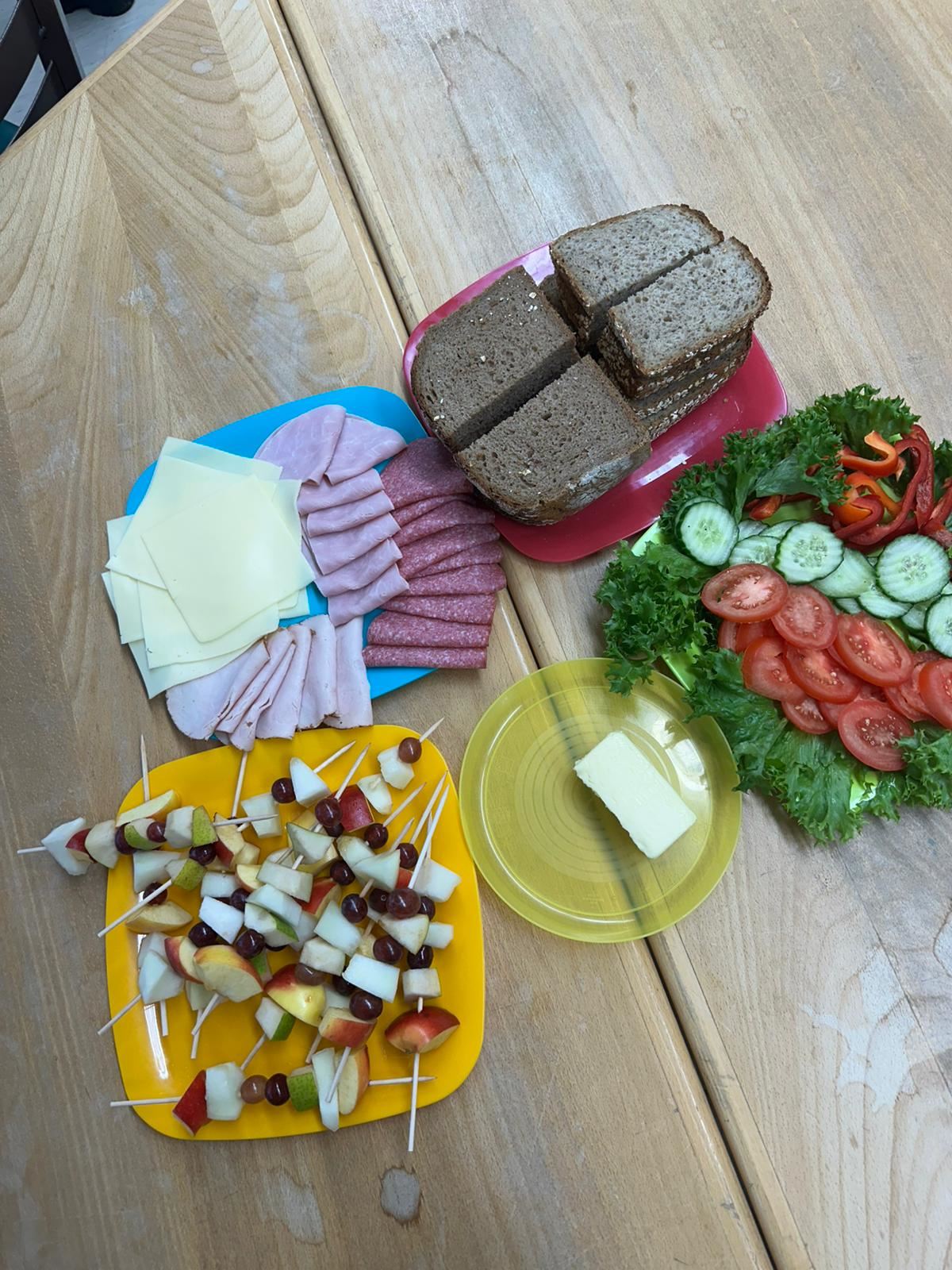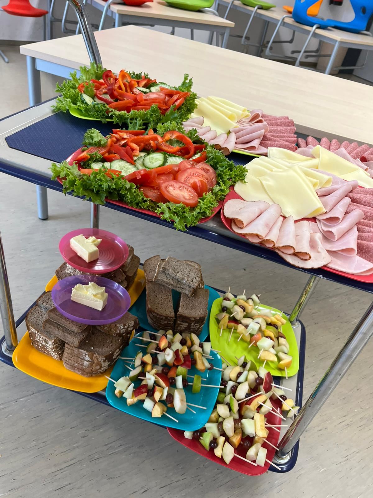 Anschließend wurde es praktisch: Die Kinder konnten sich ihre eigenen Brote belegen – mit Käse, Wurst und viel frischem Gemüse wie Paprika, Gurken und Tomaten. Dabei hatten alle viel Spaß und konnten gleichzeitig erleben, wie lecker ein gesundes Frühstück schmecken kann.