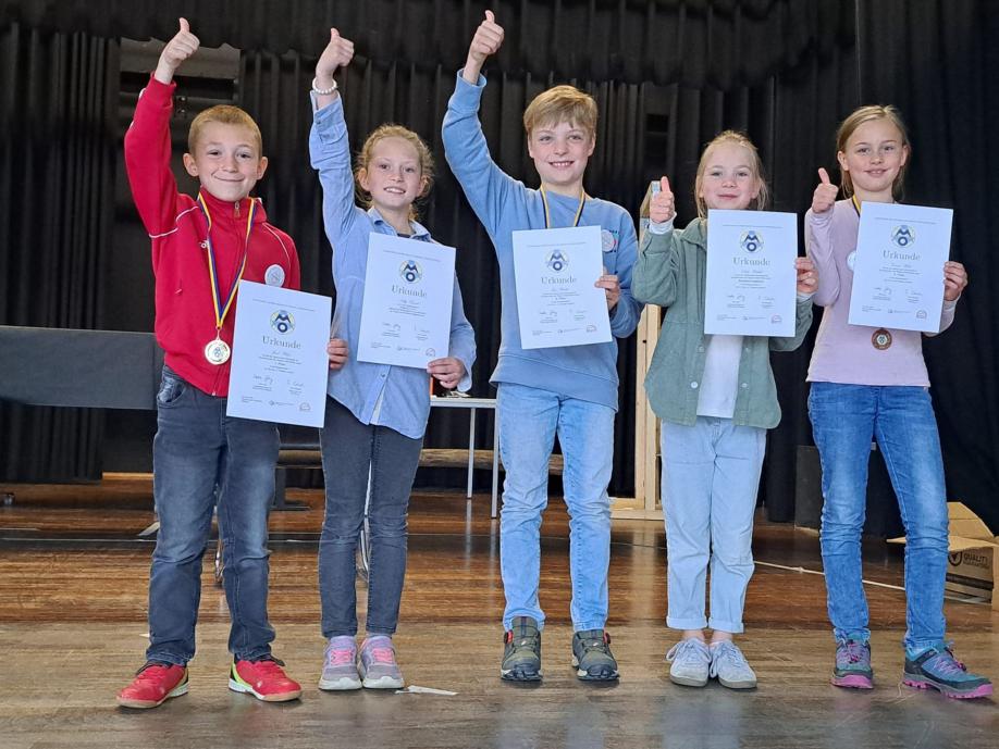 Aufgrund ihrer guten sportlichen Leistungen bei den Bundesjugendspielen wurden zehn Kinder mit der Ehrenurkunde belohnt.