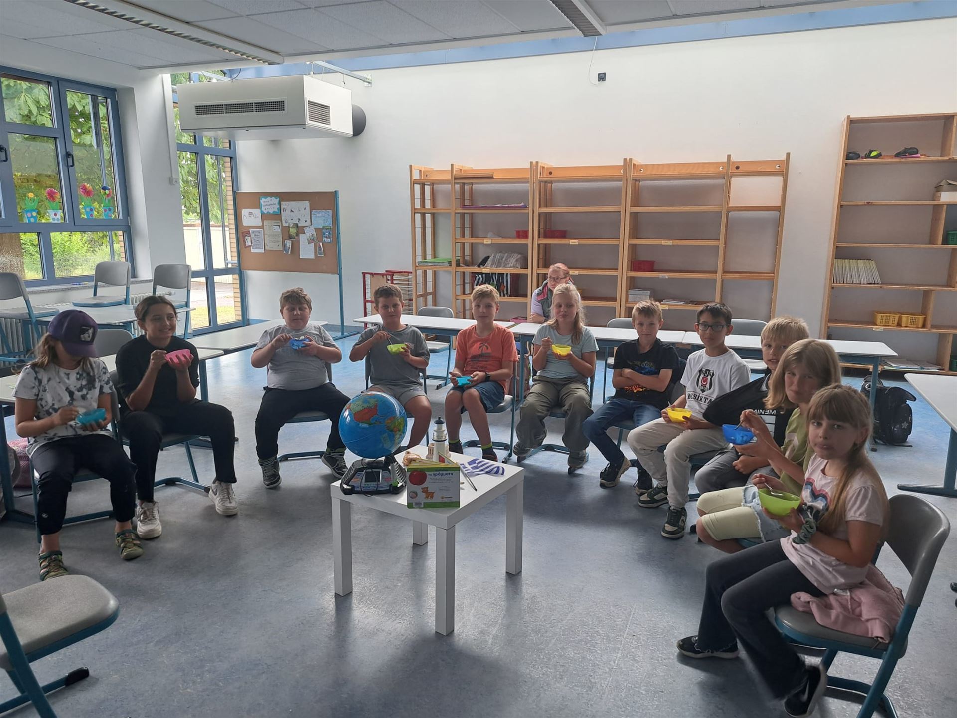 In der vergangenen zwei Tagen vor den Ferien begaben sich unsere Schülerinnen und Schüler auf eine spannende Reise „Rund um die Welt“. In zahlreichen Projekten konnten die Kinder verschiedene Länder und Kulturen hautnah erleben. Ob sie unter anderem japanische Schriftzeichen ausprobierten, ägyptische Hieroglyphen entschlüsselten, griechische Spezialitäten verköstigten oder Fußball wie in Brasilien spielten– jedes Projekt öffnete ein Fenster in eine andere Welt.